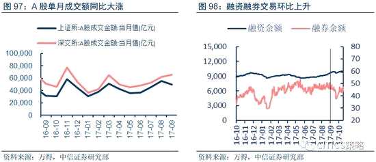 具體來看:9月,上交所成交金額為4.95萬億,環(huán)比下降10.77%,同比上漲56.74%;深交所成交6.55萬億,環(huán)比上漲5.42%,同比上升28.48%。9月,融資買入額合計11655.72億元,同比上漲59.17%,融券賣出額164.65億元,同比上升91.66%。