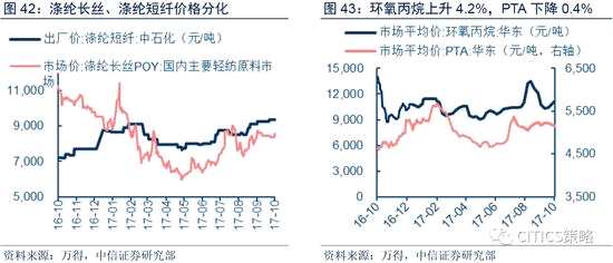 化學纖維方面,滌綸短纖價格小幅上升、滌綸長絲、PTA價格環(huán)比下降。截至10月23日,滌綸短纖出廠價環(huán)比上升1.1%,滌綸長絲POY市場價環(huán)比下跌1.4%,PTA環(huán)比下跌0.4%。
