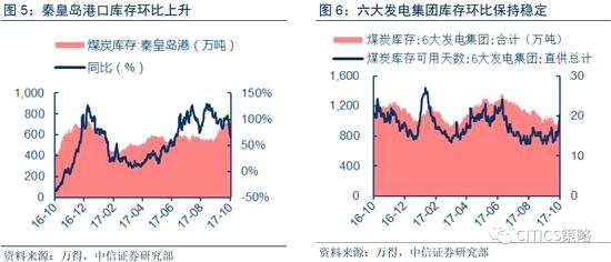 港口庫存環(huán)比上升。截至10月23日,秦皇島港煤炭庫存為717.0萬噸,環(huán)比上升29.4%,同比上漲96.4%,秦皇島港煤炭調度錨地船舶數為78艘,環(huán)比下降6.0%,同比上升81.4%。煤炭港口庫存大幅上升,下游需求有所下降,謹慎看待庫存和需求情況。