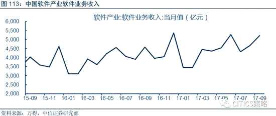 9月中國軟件產業(yè)業(yè)務收入大幅增長,同比高達14.0%。9月中國軟件產業(yè)軟件業(yè)務收入5225.87億元,環(huán)比增加11.5%。軟件連續(xù)3月大幅增長,但仍處于波動期,總體景氣度較高。