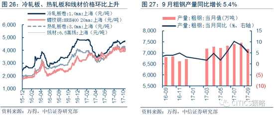 ?鋼鐵:10月鋼材指數環(huán)比小幅下降,同比大幅增加,除螺紋鋼其他各類鋼材價格環(huán)比均不同程度上升,鐵礦石價格環(huán)比下降11.1%。10月全國高爐開工率下降。螺紋鋼和熱卷板庫存環(huán)比下降,冷軋板和線材庫存環(huán)比上漲。