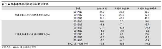 1.1A股三季度凈利累積同比為18.3%,較中報(bào)略回升