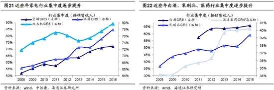 毛利率略回升。17Q3/17Q2/17Q1全部A股毛利率為19.36%/18.94%/19.10%,剔除金融后為19.16%/18.91%/19.08%,剔除金融兩油后為19.32%/18.97%/19.13%,毛利率略回升。橫向比較毛利率、收入和凈利潤(rùn)的關(guān)系,可以發(fā)現(xiàn)毛利率的變化總是先于收入和凈利潤(rùn)同比的變化,凈利潤(rùn)同比處于毛利率和收入同比之間。A股剔除金融兩油的毛利率從09年下滑至12年Q3的17.7%后觸底回升,至17年Q3又回升至19.3%,與歷史上05-07年左右相當(dāng)。在新時(shí)代,行業(yè)集中度提升強(qiáng)化龍頭地位,加之龍頭公司盈利能力強(qiáng),這將助推整體毛利率抬升。近期CPI和PPI剪刀差持續(xù)縮小,有投資者擔(dān)心毛利率將受到拖累,但展望未來(lái),我們認(rèn)為CPI和PPI剪刀差有望擴(kuò)大,銷售毛利率受拖累的概率較小。1990/12-2001/02期間當(dāng)月CPI同比-PPI同比長(zhǎng)期低于0,A股剔除金融兩油的毛利率從1990Q4的22.9%降至2000Q3的19.9%,隨后反彈至2001Q1的51.4%,期間A股(不含金融)中下游行業(yè)營(yíng)收占比也從1990年的68%降至2000年的56%,隨后回升至2001年的60%。2016年中下游行業(yè)營(yíng)收占比達(dá)73%,加之CPI和PPI剪刀差持續(xù)縮小,17年以來(lái)A股毛利率進(jìn)一步下滑。但是,展望未來(lái),Wind一致預(yù)期顯示當(dāng)月CPI同比-PPI同比有望從17年9月的-5.3%回升至17年12月的-1.3%,上中下游價(jià)格傳導(dǎo)機(jī)制更加通暢,17年全年毛利率有望震蕩企穩(wěn)。