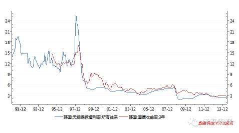 圖:1998年之后韓國利率水平大幅下降