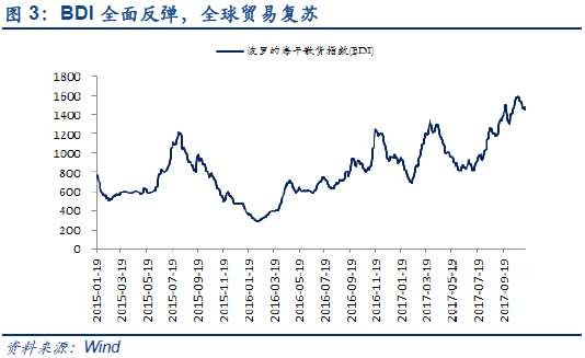 我們傾向于判斷在共和黨減稅方案和鮑威爾可能推動(dòng)加強(qiáng)金融自由化的政策前景下,美國(guó)經(jīng)濟(jì)將帶動(dòng)全球經(jīng)濟(jì)進(jìn)入復(fù)蘇更為強(qiáng)勁的2018年,中國(guó)出口更多的可能是超預(yù)期。