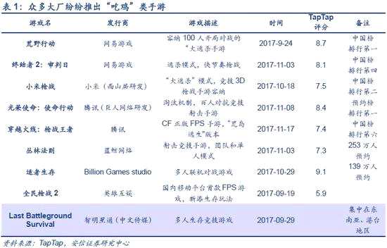 《絕地求生:大逃殺》的成功再次帶火了FPS游戲,點(diǎn)燃了大逃殺模式的熱潮,也使得“吃雞”成為這類游戲的代名詞?,F(xiàn)象級(jí)游戲的巨大流量紅利自然引起了國(guó)內(nèi)資本的關(guān)注,各家游戲大廠紛紛上線“吃雞”類手游攻占市場(chǎng),其中以騰訊、網(wǎng)易和小米為主。
