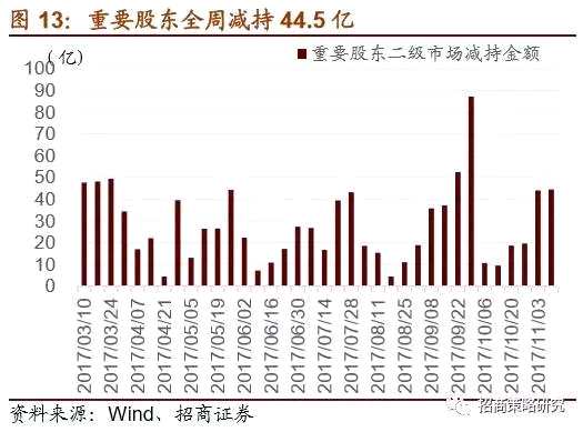 分項(xiàng)資金面方面,下周限售股解禁規(guī)模環(huán)比下降,其中定增解禁規(guī)模為181億,未來幾周限售股解禁規(guī)模將會(huì)回升;上周全周重要股東二級市場減持44.5億。