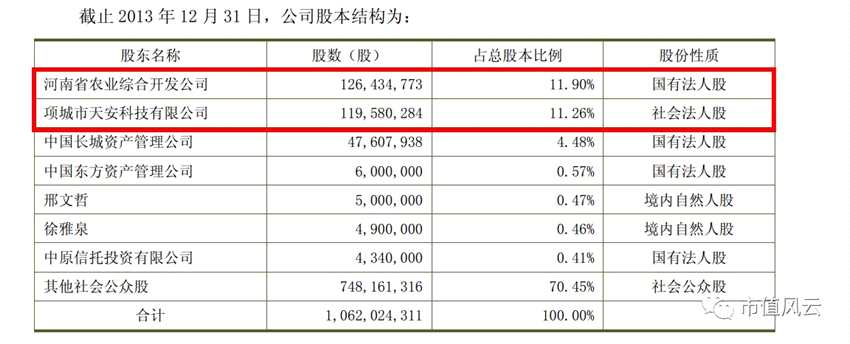 超過公司第一大股東河南省農(nóng)業(yè)綜合開發(fā)公司(占本公司總股本的11.90%),厲不厲害,就多0.02%。