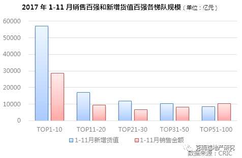 1-11月,TOP100房企共新增貨值10.47萬億元,為同期銷售金額TOP100房企銷售額的1.7倍,而考慮到這些項目未來的增值溢價,按照正常的去化速度,這些新增貨值在明年入市后,將有效提升明年1-11月百強房企銷售量,可以預(yù)見的是在行業(yè)規(guī)?;痉€(wěn)定的背景下,未來百強的集中度還有較高上升空間。