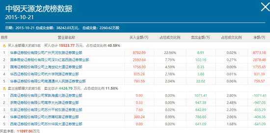 另從中鋼天源當(dāng)天龍虎榜數(shù)據(jù)得知,買(mǎi)一席位華泰廣州天河?xùn)|路可能也是廖國(guó)沛的眾多席位之一。