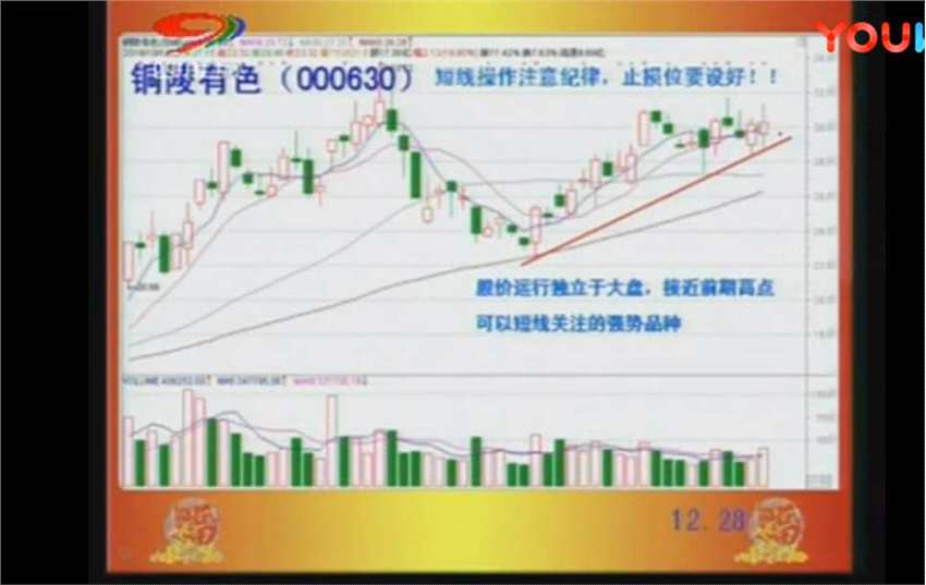因為時間比較久,基金君并未找到吳定昌做嘉賓時的視頻,便在2010年12月份的視頻中隨意點開一期看了一下,一名頭銜為“注冊分析師”的嘉賓在簡單分析了幾句大盤走勢之后,便開始推薦點評個股并推薦,還通過K線圖提示投資者止損位。