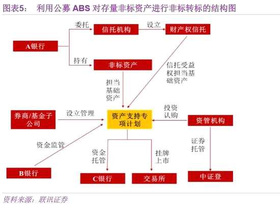 利用公募ABS進(jìn)行轉(zhuǎn)標(biāo),銀行等金融機(jī)構(gòu)既可以實(shí)現(xiàn)向企業(yè)客戶放款維護(hù)客戶關(guān)系的目的,也可實(shí)現(xiàn)投向高收益非標(biāo)資產(chǎn)、進(jìn)行期限錯(cuò)配獲得高息差的目的,而且更為關(guān)鍵的是在當(dāng)前對“非標(biāo)轉(zhuǎn)標(biāo)”方式認(rèn)定仍存在較大分歧的背景下,公募ABS是最為穩(wěn)定、合規(guī)的形式,可謂一舉多得。