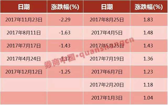 據(jù)券商中國記者統(tǒng)計(jì),2017年全年滬指單日漲幅超過1%的次數(shù)僅有7次,且全年單日漲幅未曾超過2%。跌幅方面,滬指僅1次跌幅超過2%,4次跌幅超過1%。