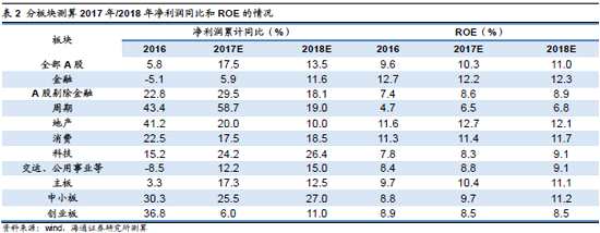 春季躁動關(guān)注通脹主題和先進(jìn)制造,上半年整體偏價值尤其是金融?;仡櫄v史,一季度處于數(shù)據(jù)空窗期,市場主線不明確,春季躁動行情往往表現(xiàn)為政策和事件主題,2018年初的躁動關(guān)注通脹主題和先進(jìn)制造。一季度CPI處在全年高點,疊加即將出臺的農(nóng)業(yè)1號文,通脹相關(guān)主題值得重視,如養(yǎng)殖飼料、農(nóng)藥化肥、超市。在南方做臘肉、北方殺年豬的消費(fèi)拉動下,豬價自17年12月初開始反彈。在玉米供給側(cè)改革的大背景之下,預(yù)計17/18年度產(chǎn)量同比下降,同時下游玉米深加工企業(yè)擴(kuò)張?zhí)崴?,飼料消費(fèi)較為穩(wěn)定,17/18年度會首次出現(xiàn)產(chǎn)需缺口。近期尿素由于氣頭限產(chǎn),供求偏緊價格持續(xù)上漲。全球農(nóng)藥行業(yè)需求回暖,而嚴(yán)格的環(huán)保核查以及冬季限產(chǎn)政策導(dǎo)致上游原料供應(yīng)嚴(yán)重不足,推動農(nóng)藥產(chǎn)品價格上漲。食品CPI與超市經(jīng)營性利潤增速的變動趨同,且利潤總額增速彈性更大,且食品CPI與超市板塊超額收益的相關(guān)關(guān)系明顯。此外,十九大報告提出“我國經(jīng)濟(jì)已由高速增長階段轉(zhuǎn)向高質(zhì)量發(fā)展階段,中央經(jīng)濟(jì)工作會議提出“制造大國向制造強(qiáng)國轉(zhuǎn)變”,先進(jìn)制造業(yè)是年初政策焦點。著眼2018年,我們維持《價值龍頭攜手成長龍頭——論2018年市場風(fēng)格-20171219》觀點,價值龍頭的代表上證50目前 PE(TTM)12倍,我們預(yù)計17、18年凈利潤同比12%、11%,PEG均在1.0左右,位于近十年以來中間位置,中證500 PE(TTM)29倍,預(yù)計17、18年凈利潤同比45%、25%,2018年P(guān)EG為1.2左右,位于近十年以來低位。價值龍頭中金融性價比更優(yōu)、消費(fèi)白馬有配置意義,成長龍頭如先進(jìn)制造(自動化、信息化)、新興消費(fèi)(品牌化、服務(wù)化)。18年上半年以價值龍頭為主,一方面金融估值盈利匹配優(yōu)勢明顯,預(yù)計銀行17年(18年)凈利潤同比為5%(10%),保險10%(45%),券商-8%(3%),業(yè)績改善且公募基金和QFII均低配。尤其是金融股中銀行估值修復(fù)不充分,四大國有行才1倍左右PB(MRQ),ROE(TTM)維持13-14%左右,美國銀行ROE(TTM)僅8%、PB(MRQ)為1.3倍。而且2018年6月A股納入MSCI,3-4月隨著年報和季報逐步公布,外資等望增加對銀行等金融的配置需求。