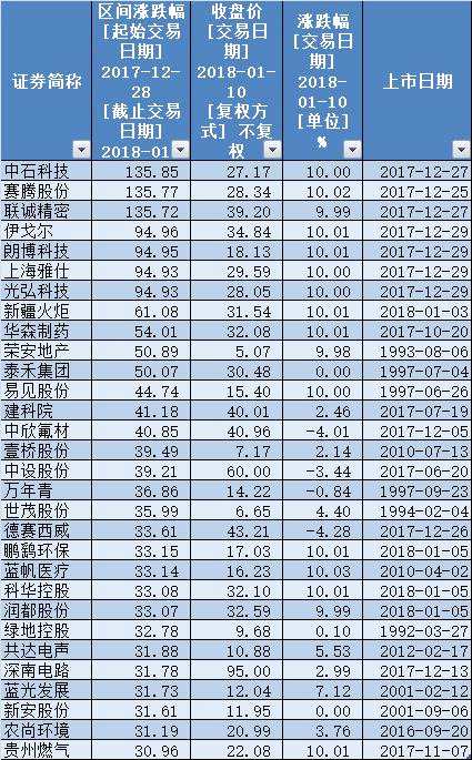 近9個(gè)交易日漲幅榜前30位個(gè)股