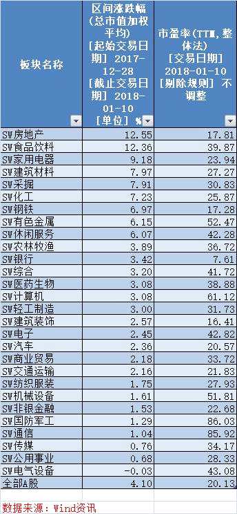 此外,漲幅居前的板塊還包括家用電器、建筑材料、采掘、化工和鋼鐵,區(qū)間漲幅在6.97%至9.18%之間。