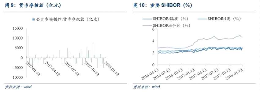 解讀:上周國債收益率仍處于高位。上周1年期國債收益率停止兩周下跌轉(zhuǎn)為上漲,五年期與十年期國債收益率維持此前的小幅上漲趨勢(shì),1/10年期國債利差縮小,債市收益率曲線區(qū)趨于平緩。在跨年資金面收緊情況下,央行超額投放流動(dòng)性,對(duì)市場(chǎng)提振作用有限。考慮到周末銀監(jiān)會(huì)監(jiān)管新政再出、金融去杠桿再升級(jí)等因素影響,國債市場(chǎng)情緒短期內(nèi)難有較大程度好轉(zhuǎn),收益率大概率居高難下。