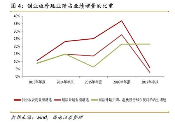 西南證券(600369) 17日發(fā)布了名為《永遠(yuǎn)不要對(duì)成長(zhǎng)失去信心》的報(bào)告,指出從整體業(yè)績(jī)?cè)鏊偕峡?,?chuàng)業(yè)板雖然自2016年一季度開始業(yè)績(jī)連續(xù)五個(gè)季度增速下滑,但到2017年三季度,創(chuàng)業(yè)板業(yè)績(jī)?cè)鏊僖呀?jīng)呈現(xiàn)見底反轉(zhuǎn)態(tài)勢(shì),在把溫氏股份(300498)、樂視網(wǎng)(300104) 以及外延并購的業(yè)績(jī)剔除后,創(chuàng)業(yè)板內(nèi)生業(yè)績(jī)?cè)鏊僖呀?jīng)連續(xù)一年多在20%左右。