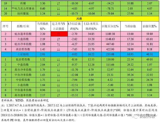 ②風(fēng)格:2017.5.12-2018.1.26 行情修復(fù)強(qiáng)于上證綜指風(fēng)格板塊有低市盈率指數(shù)、大盤指數(shù)、低市凈率指數(shù)、高價(jià)股指數(shù)等。