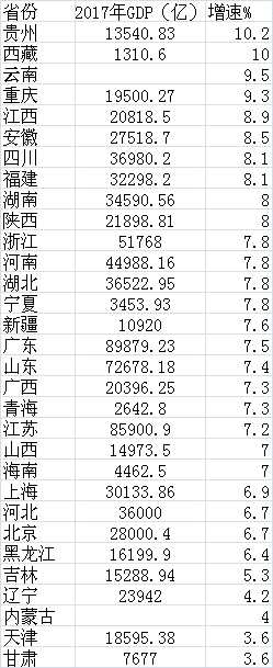 表1:2017年31個省份經(jīng)濟(jì)增速