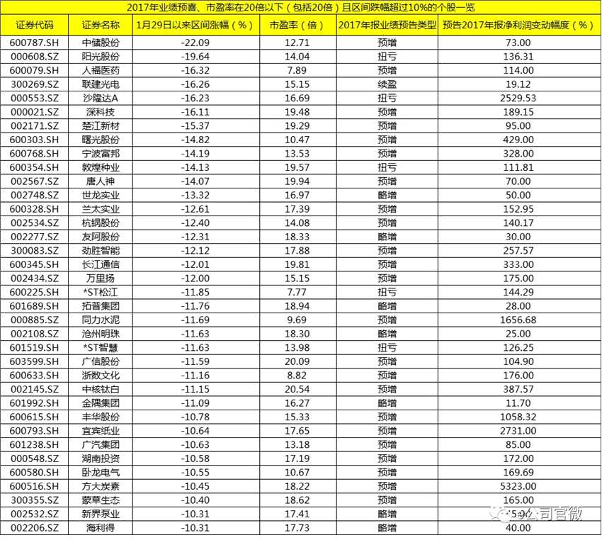 同花順(300033) 統(tǒng)計(jì)同時(shí)顯示,滬深兩市中,符合年報(bào)業(yè)績(jī)預(yù)喜、市盈率在20倍以下(包括20倍)且區(qū)間跌幅超過(guò)10%的個(gè)股有36只,主要分布在化工、房地產(chǎn)、汽車、有色金屬等板塊。
