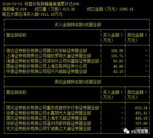 龍虎榜顯示,當(dāng)日大跌個(gè)股鮮見(jiàn)機(jī)構(gòu)席位,大部分為游資所為。由于閃崩后交易量急速萎縮,進(jìn)入龍虎榜的閃崩個(gè)股普遍交易額在千萬(wàn)以下。連日跌停的科融環(huán)境(300152)當(dāng)日凈賣出1511萬(wàn)元,龍虎榜賣出首位的信達(dá)證券營(yíng)口光華路營(yíng)業(yè)部也只賣出289萬(wàn)元。