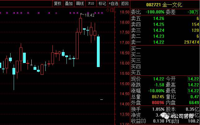 其中金一文化(002721) 此前公告,公司限售股將在2018年1月31日上市流通,涉及股份6949.93萬(wàn)股,占公司總股本 8.33%。1月31日金一文化盤中閃崩。盤后公司披露一季度業(yè)績(jī)預(yù)增逾3倍,但仍難止住跌勢(shì),2月1日開(kāi)盤后隨即封死跌停到收盤。