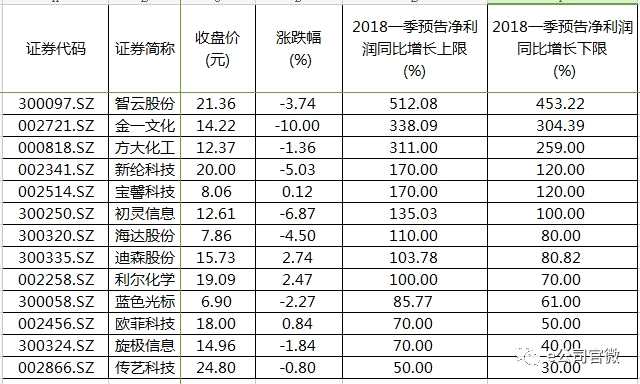 部分公司公布2018年一季度業(yè)績(jī)預(yù)告