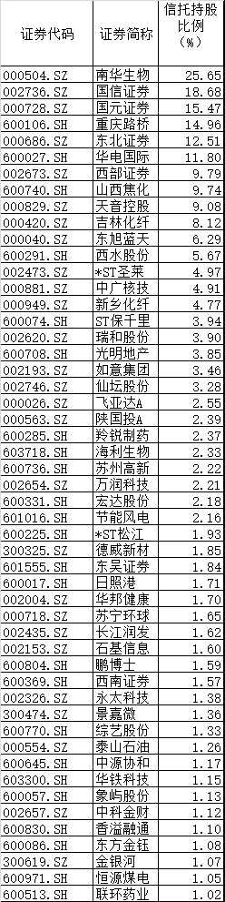 以下是本報記者梳理的2017年第三季度信托持股比10%左右的個股: