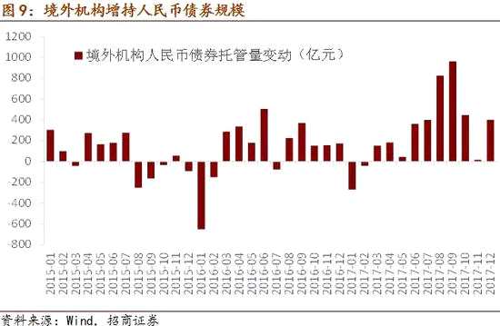 根據(jù)中債登日前公布的最新數(shù)據(jù),境外機(jī)構(gòu)1月份共增持人民幣債券630億元,其中605億元為人民幣國(guó)債。1月份雖然中美利差持續(xù)收窄,但在人民幣匯率持續(xù)走強(qiáng)的情況下,境外機(jī)構(gòu)繼續(xù)對(duì)人民幣債券進(jìn)行了明顯增持,國(guó)債市場(chǎng)中境外占比進(jìn)一步升至5.47%。在日前召開的2018年中國(guó)人民銀行工作會(huì)議中,擴(kuò)大債券市場(chǎng)雙向開放(注意,是雙向開放)被列入2018年工作的主要任務(wù)。