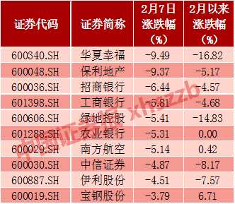 從個(gè)股情況來看,工商銀行(601398) 、農(nóng)業(yè)銀行(601288)中信證券(600030) 、伊利股份(600887) 、華夏幸福(600340) 、保利地產(chǎn)(600048) 等一眾權(quán)重白馬股均大幅下挫。板塊中,上漲的僅7只個(gè)股,跌幅超過3%達(dá)到了17只。