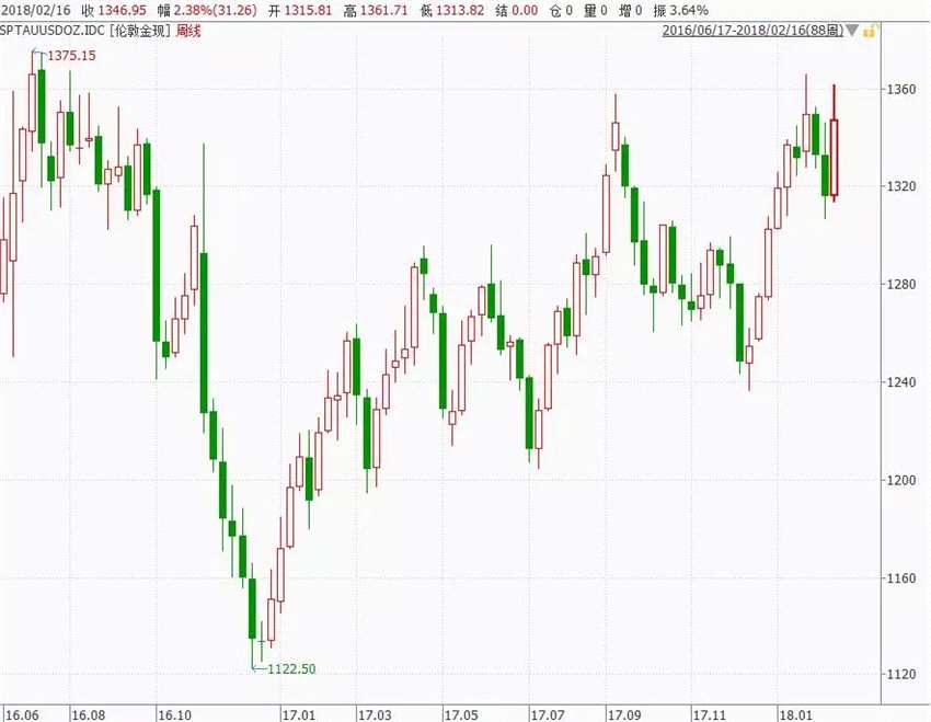 在美元觸及三年低位的同時,倫敦現貨黃金上周上漲2.36%,收于1346.95美元/盎司。COMEX黃金上周上漲2.56%,收于1349.4美元/盎司。