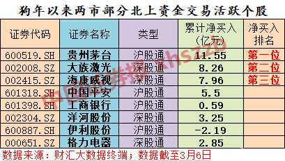 從具體個(gè)股角度來看,盡管春節(jié)之后貴州茅臺(tái)(600519) 、中國平安(601318) 等白馬藍(lán)籌依舊是北上資金凈流入的重點(diǎn)個(gè)股標(biāo)的,但大族激光(002008) 、??低?002415) 等中小創(chuàng)個(gè)股,也異軍突起。