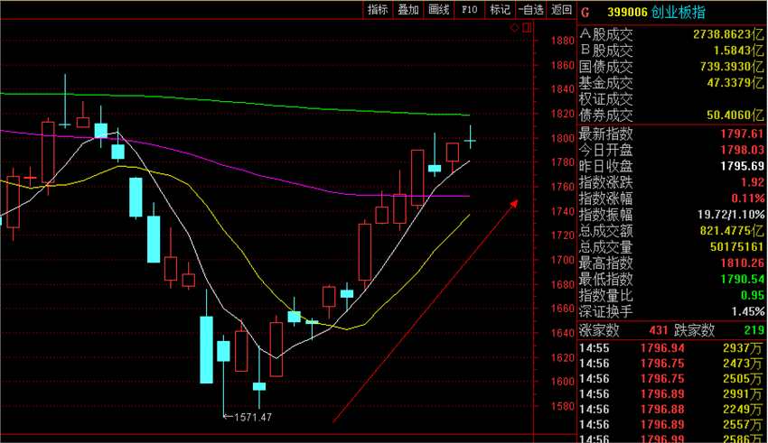從近期最低點(diǎn)1571點(diǎn),反彈至今接近1800點(diǎn),創(chuàng)業(yè)板指數(shù)從底部起來反彈漲幅已經(jīng)達(dá)到14.39%。