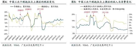 個人所得稅在整個稅收體系中的占比不高,且起征點提高并非下調(diào)稅率那樣全面影響,因此提高個稅起征點對整體稅收收入的沖擊并不大。個稅起征點的提高會直接作用于對免征額更為敏感的中低收入的人群,一方面帶動居民可支配收入短期上升,另一方面會使大眾消費品需求得到提振。