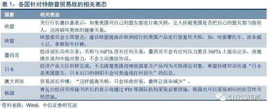 ?。?)回顧歷史,當(dāng)前特朗普政府的行為與2002年小布什政府較為類似。歷史上最大的貿(mào)易戰(zhàn)出現(xiàn)在1933年大蕭條之后,但是我們認為,當(dāng)前特朗普政府的行為更像2002年。2002年,美國對中國、法國、韓國、日本、澳大利亞等28個國家和地區(qū)提出鋼鐵產(chǎn)品反傾銷起訴,并在2002年3月20日正式啟動“201條款”,對大部分進口鋼材征收8%-30%的進口關(guān)稅,對14種鋼鐵產(chǎn)品實行進口限額。美國實施201條款后,引起了世界各國反傾銷、限制進口的連鎖反應(yīng),歐洲的反應(yīng)尤其強烈。同時,歐盟、日本、韓國和中國等向WTO提起訴訟,2003年11月,WTO最終裁決美國敗訴,但小布什拒絕接受裁決結(jié)果。直到2003年12月4日,迫于歐盟威脅將向美國出口的汽車等商品實行報復(fù)性關(guān)稅等一系列舉措,和國內(nèi)鋼鐵業(yè)的壓力,小布什擔(dān)心影響2004年大選,于是提前終止實施了一年多的進口鋼材關(guān)稅,原計劃是執(zhí)行至2005年。特朗普政府的行為與2002年的相似之處在于:(1)關(guān)稅都是大選的政治籌碼之一,小布什政府開始征收關(guān)稅是為了獲得選票,而提前終止也是因為擔(dān)心歐盟的報復(fù)性行為影響選舉,而正如前文分析的,獲取選票也是特朗普的重要訴求;(2)不論是特朗普,還是小布什,在執(zhí)行鋼鐵關(guān)稅制度的時候,都有“豁免”,小布什當(dāng)年豁免了澳大利亞85%鋼鐵出口的關(guān)稅,而特朗普則是特意“討好”加拿大和墨西哥。