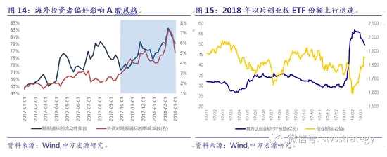 風(fēng)格切換的感知:除了估值,微觀結(jié)構(gòu)是感知某種風(fēng)格物極必反的重要指標(biāo),而推動(dòng)風(fēng)格發(fā)生明顯變化的真金白銀往往是新的邊際投資者的介入。風(fēng)格指數(shù)的相對(duì)估值偏離中樞經(jīng)常被作為把握風(fēng)格切換的參考;基金是A股重要機(jī)構(gòu)投資者,歷史上幾輪風(fēng)格轉(zhuǎn)換發(fā)生前,新的領(lǐng)軍風(fēng)格的板塊基金配置系數(shù)都在歷史低位附近。邊際投資者偏好影響股市風(fēng)格,未來(lái)外資、銀行資管和養(yǎng)老金等投資者偏好對(duì)于市場(chǎng)風(fēng)格存在階段性重要影響;創(chuàng)業(yè)板ETF申購(gòu)份額是反映投資對(duì)于創(chuàng)業(yè)板指的樂(lè)觀情緒及觀察增量資金配置創(chuàng)業(yè)板的窗口;成交額比值極值點(diǎn)對(duì)于預(yù)判風(fēng)格切換有一定提示作用(例如2017年末申萬(wàn)宏源策略對(duì)傳媒的關(guān)注);情緒指標(biāo)對(duì)于提示風(fēng)格切換也有重要意義,以MA60強(qiáng)勢(shì)股占比為例,我們發(fā)現(xiàn)相對(duì)指數(shù)的情緒指標(biāo)在(0,1)之間波動(dòng),在極值點(diǎn)效果指示效應(yīng)較強(qiáng)。