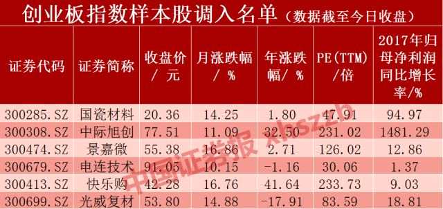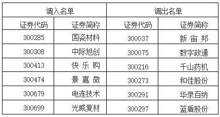 創(chuàng)業(yè)板指數(shù)樣本股調(diào)整名單