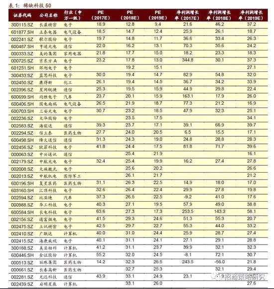 分享一張此前招商證券(600999) 梳理的稀缺科技50名單: