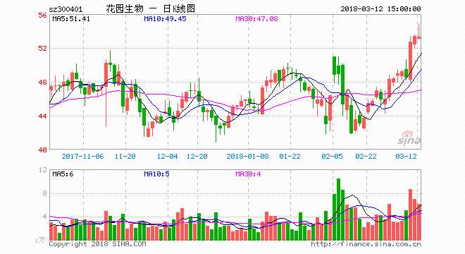 統(tǒng)計(jì)顯示,最近一個(gè)月來(lái)花園生物累計(jì)漲幅超過(guò)22%,股價(jià)已經(jīng)運(yùn)行至歷史高位。昨日,花園生物早盤沖高,最高時(shí)一度觸及54.77元,刷新該股上市以來(lái)股價(jià)新高,不過(guò)好景不長(zhǎng),上午10時(shí)過(guò)后出現(xiàn)明顯回落,午后則持續(xù)在平盤附近整理,至收盤時(shí)微跌0.19%,股價(jià)報(bào)53.27元。