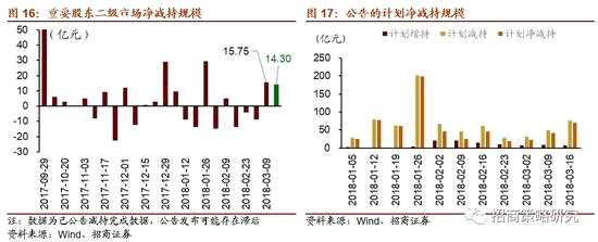 資金需求方面,3月12日-3月16日,節(jié)后首次公開發(fā)行,IPO募資13.6億元,后一周將增加至16.5億元;限售解禁市值599.6億元,較前一期增加252.1億元,后一周將迎來一個解禁小高峰,解禁市值將增加至1840.3億元;重要股東凈減持14.3億元,較前一周下降1.5億元;期間公布的增減持計劃合計凈減持規(guī)模約69.6億元,較前期增加約28.5億元。