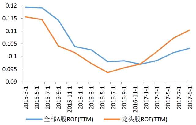 龍頭股ROE自2017年開始高于全部A股