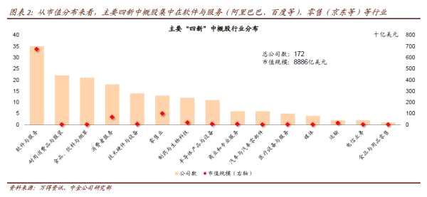 主要四新中概股行業(yè)集中情況。數(shù)據(jù)來(lái)源:中金公司研究部。