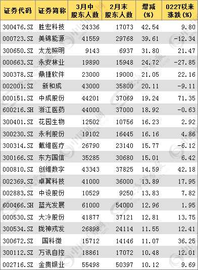 統(tǒng)計(jì)顯示,剔除去年四季度以來上市新股,在兩市投資者互動(dòng)平臺(tái)上披露最新3月中旬股東人數(shù)的A股公司有334家,2月末也披露股東人數(shù)的公司有302家。