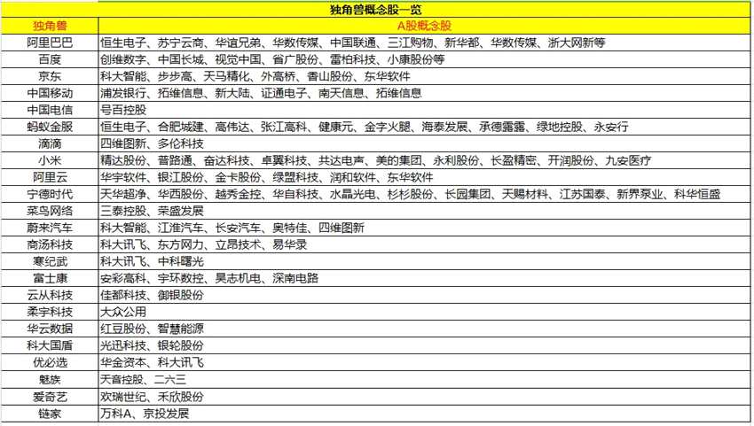 需要說明的是,由于篇幅有限,在本文中獨角獸概念股并未能一一列舉。