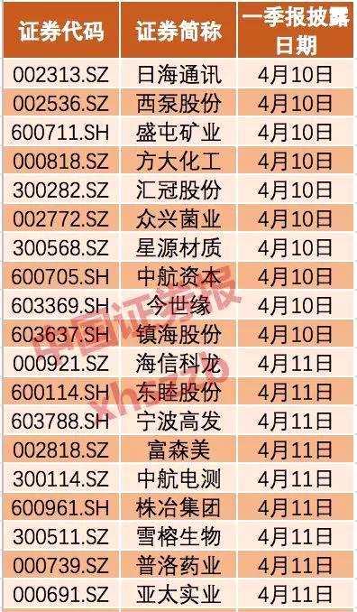 4月10日-11日披露一季報(bào)上市公司名單