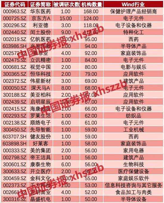 被調(diào)研次數(shù)5次以上公司