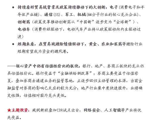 國(guó)泰君安:更看好消費(fèi)與制造業(yè)中TMT階段性表現(xiàn)。周期看龍頭右側(cè)機(jī)會(huì),金融地產(chǎn)隨著金融出清進(jìn)程的展開(kāi),全年看絕對(duì)受益。主題方面重點(diǎn)推薦海南旅游島、5G、工業(yè)互聯(lián)網(wǎng)、芯片國(guó)產(chǎn)化。