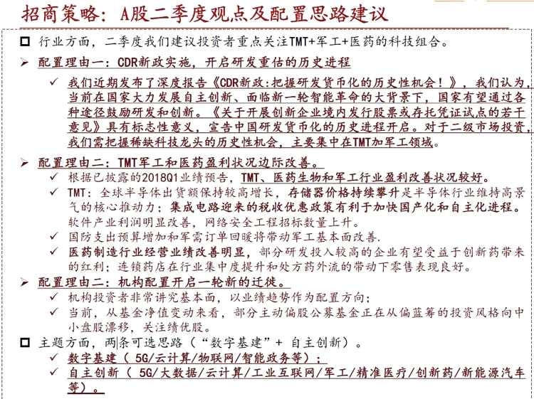 招商證券:行業(yè)方面,二季度建議重點(diǎn)關(guān)注TMT+軍工+醫(yī)藥的科技組合。主題方面,兩條可選思路(“數(shù)字基建”+ 自主創(chuàng)新)。