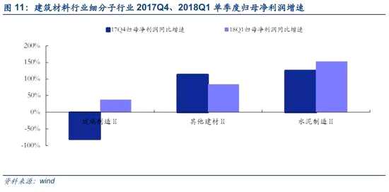 建筑材料行業(yè)18Q1(披露率42.11%)歸母凈利潤同比增速為169.36%,相對17Q4增速112.87%上漲。從建筑材料二級行業(yè)細(xì)分來看,玻璃制造Ⅱ、其他建材Ⅱ、水泥制造Ⅱ,18Q1同比增長率分別為37.44%、83.62%、151.96%。具體到公司層面,已披露32家,其中20家預(yù)喜,12家預(yù)憂,其中,海南瑞澤(002596) 的預(yù)告凈利潤變動幅度分別為299.23%,凈利潤大幅變動主要是由于其將廣東綠潤環(huán)境管理有限公司納入合并范圍,后續(xù)的盈利增速情況有待觀測。